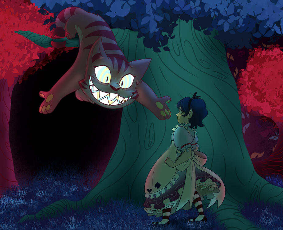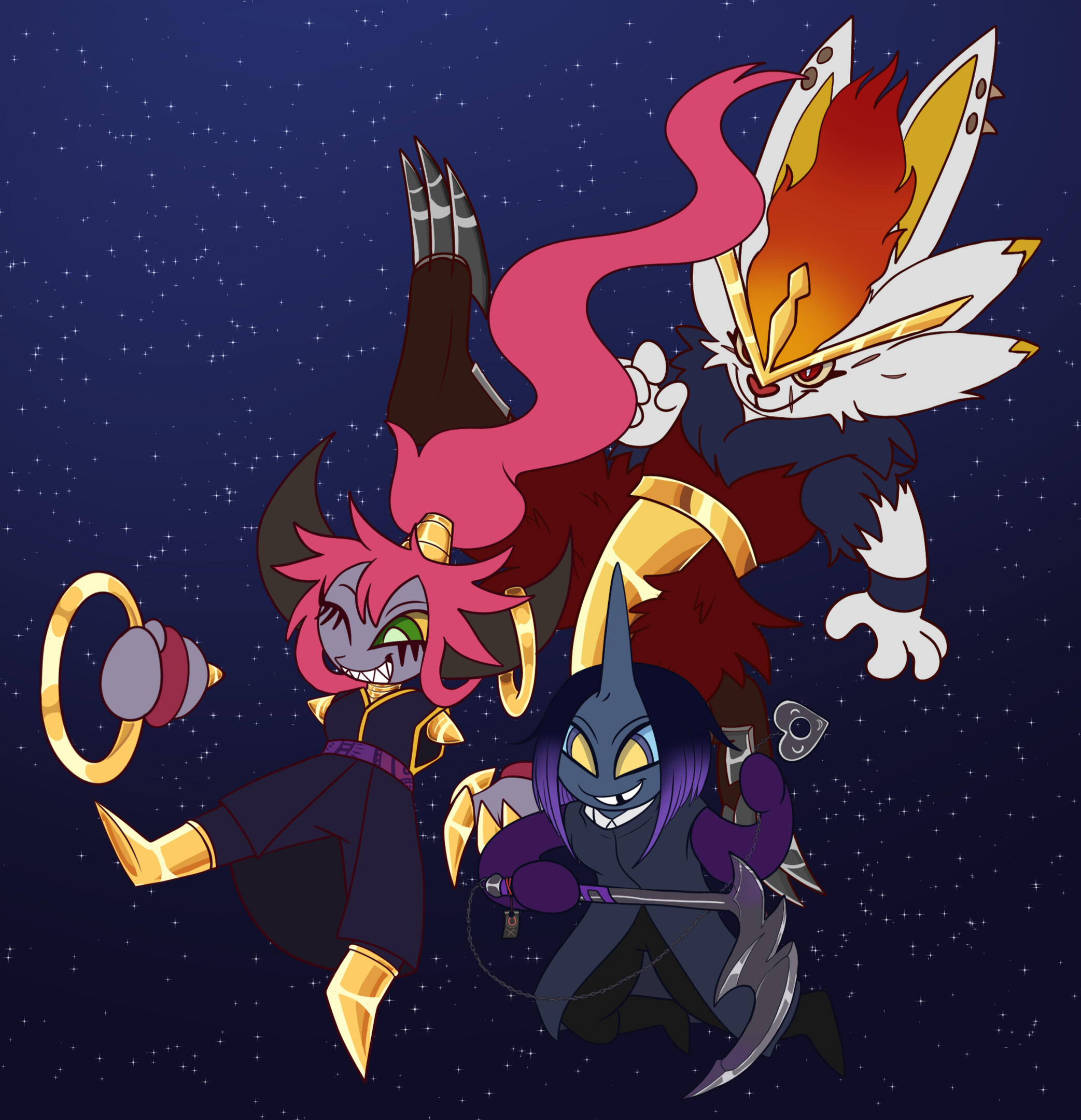 Landscape illustration of my original character with characters that belong to Licorictus and ShinyApocrypha on art fight